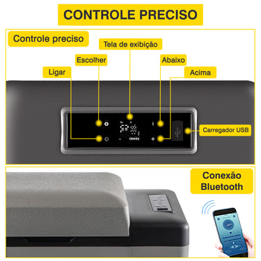 - Estrutura Perfeita: Nosso refrigerador de carro é projetado com detalhes animados. O display digital pode ajustar a temperatura; a luz LED embutida permite observar melhor o interior; a interface USB pode conectar o telefone celular; a alça embutida é conveniente para mover; Freezer para fazer sorvete. Além disso, você pode controlar a geladeira com o aplicativo móvel.