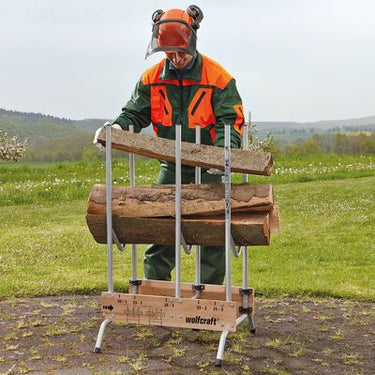 Este suporte da wolfcraft será uma grande ajuda no corte de madeira.Poderá encher um carrinho de mão inteiro com apenas dois ou três cortes, sem ter que parar a motosserra.