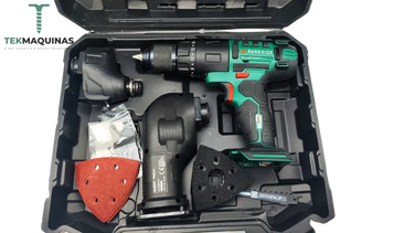 4 em 1: chave de fenda, lixadeira multiuso, serrasabre e dispositivo multifuncional Troca rápida de acessórios sem a necessidade de ferramentas Controle de velocidade contínuo, incluindo rotação para a esquerda e direita (para a chave de fenda) e parada rápida Unidade de motor com cabo ergonômico e empunhadura suave e antiderrapante Entregue sem bateria e carregador Conjunto inclui: