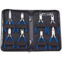 Este conjunto de alicates composto por 8 peças é fornecido num estojo de couro artificial.
