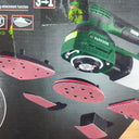 - Inclui 2 acessórios adicionais: placa de lixa manual para áreas estreitas e placa de lixa redonda para superfícies curvas.
