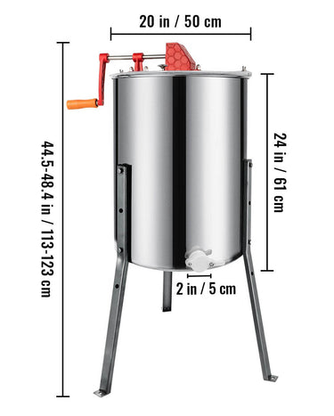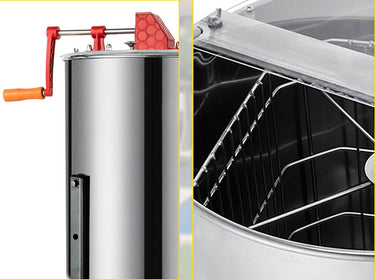 - Capacidade de 4 quadros : Nosso extrator de mel elétrico pode processar até 4 quadros por vez. Adequado para quadros de 9,2 x 17,3 x 19,2 polegadas / 23,5 x 44 x 48,8 cm. A engrenagem fechada no quadro não contamina o mel.