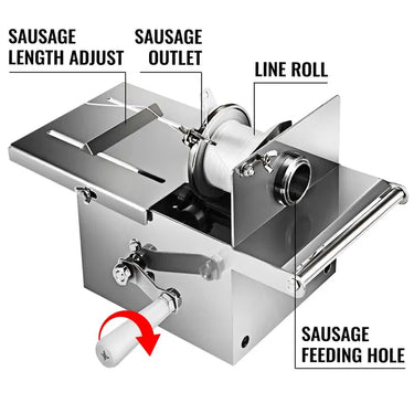【 AÇO INOX 304】- Comprimento ajustável da salsicha. Produção: 50-60 peças/minuto, diâmetro da salsicha: φ 0-32 mm. Construída em aço inoxidável 304, nossa máquina de torcer salsichas é durável, à prova de ferrugem, resistente ao desgaste, inofensiva à saúde e requer limpeza sem complicações.