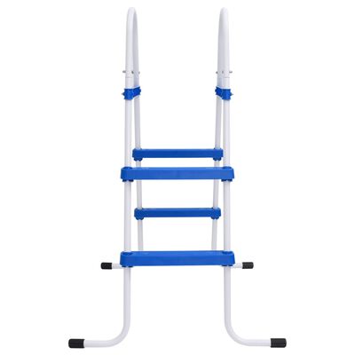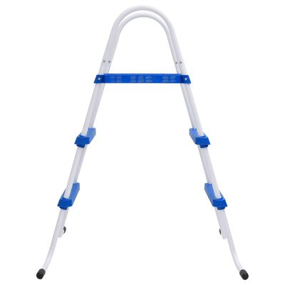 Esta escada para piscinas acima do solo, com uma estrutura de aço durável, auxilia na entrada e saída da piscina de uma forma segura e cómoda.