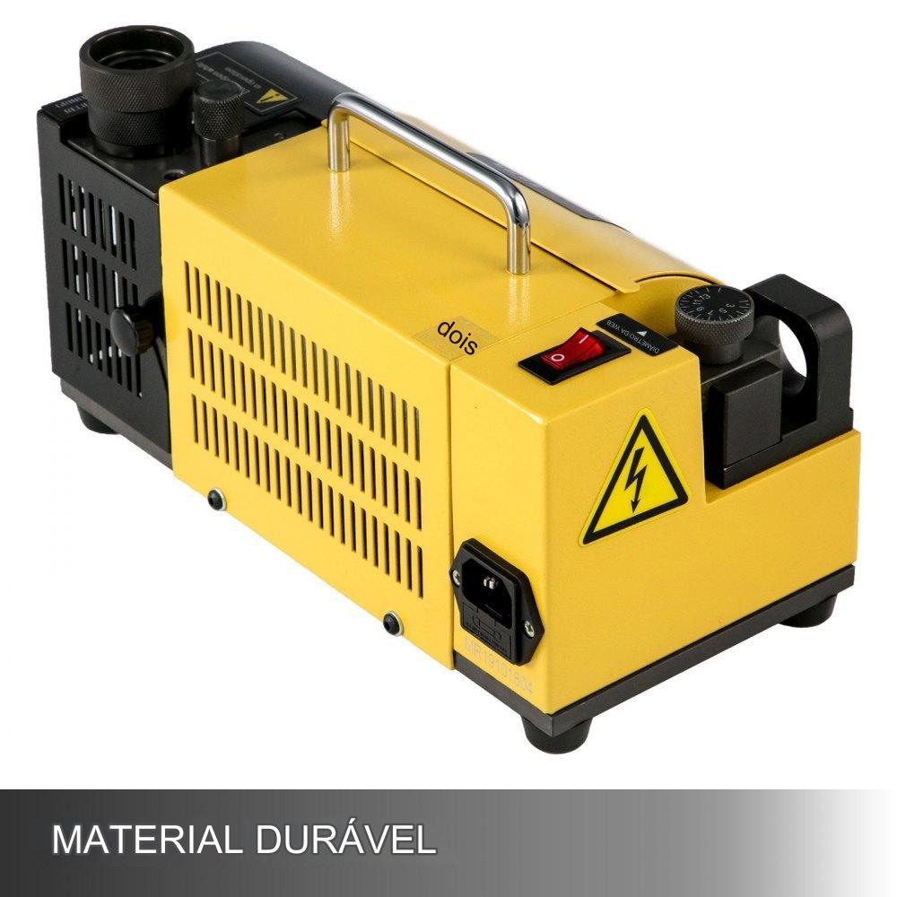 Com capacidade de trabalho ampla, a máquina de afiar possui 11 recipientes para coleta, variando de 3 a 13 mm de diâmetro, além de ser compatível com brocas de 15 mm. Além disso, sua velocidade pode atingir até 4400 RPM, o que contribui para um processo rápido e eficiente.
