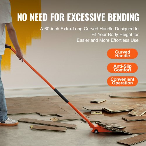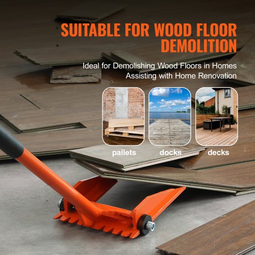 Sobre este artigo Abra o piso com facilidade: Duas palavras – rodas incluídas. Nosso levantador de ripas está equipado com duas rodas de 102 mm na parte inferior, permitindo encontrar o ângulo perfeito e levantar pisos de madeira com facilidade. Extrator de unhas incluído: Você tem unhas? Sem problemas! Há um puxador de pregos na parte traseira de nossa ferramenta de remoção de decks que permite remover pregos teimosos sem ter que trocar de ferramentas. Isso economiza tempo e dinheiro! Menos flexão, mais leveza: com a alça estendida de 60" em nosso levantador de ripas, você não precisa mais arquear as costas. A alavancagem nunca pareceu tão fácil. Faça mais sem dores nas costas, tornando suas tarefas móveis mais convenientes. Aderência confortável: Nosso poste de demolição é equipado com uma capa de espuma que garante uma aderência confortável e antiderrapante. Este design inteligente permite que você segure a barra por muito tempo sem se cansar. Uso a longo prazo? Sem problemas!