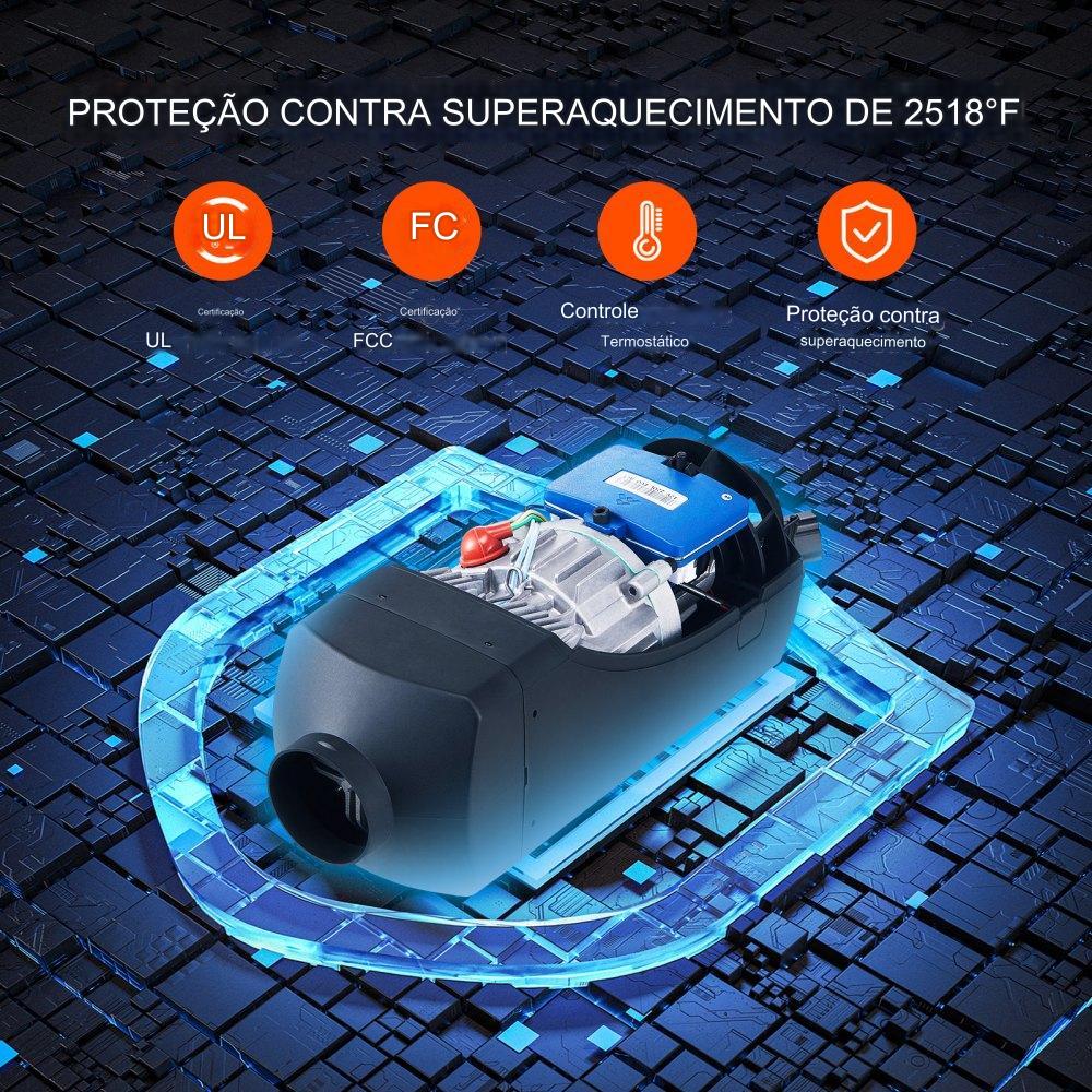 Aquecimento Eficiente: Potência de aquecimento: 2 kW; Tensão nominal: 12 V. Área aplicável: 10-15 m². O nosso aquecedor a diesel de ar possui um permutador de calor de alumínio jateado com areia para uma geração e transferência de calor rápidas, garantindo que o seu veículo, barco ou cabana atinja uma temperatura agradável dentro de 10 minutos.