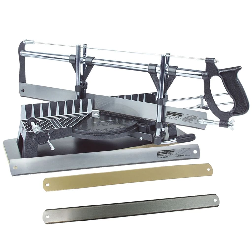 A serra de mitra de precisão, de alta qualidade e com duas lâminas de serrar em metal com 550 mm de comprimento, da Brüder Mannesmann, é ideal para fazer cortes transversais precisos e juntas de esquadria em várias peças de trabalho. Graças à guia da serra de precisão e às 11 configurações de corte predefinidas, a serra de mitra fornece resultados de corte precisos e excelentes.
