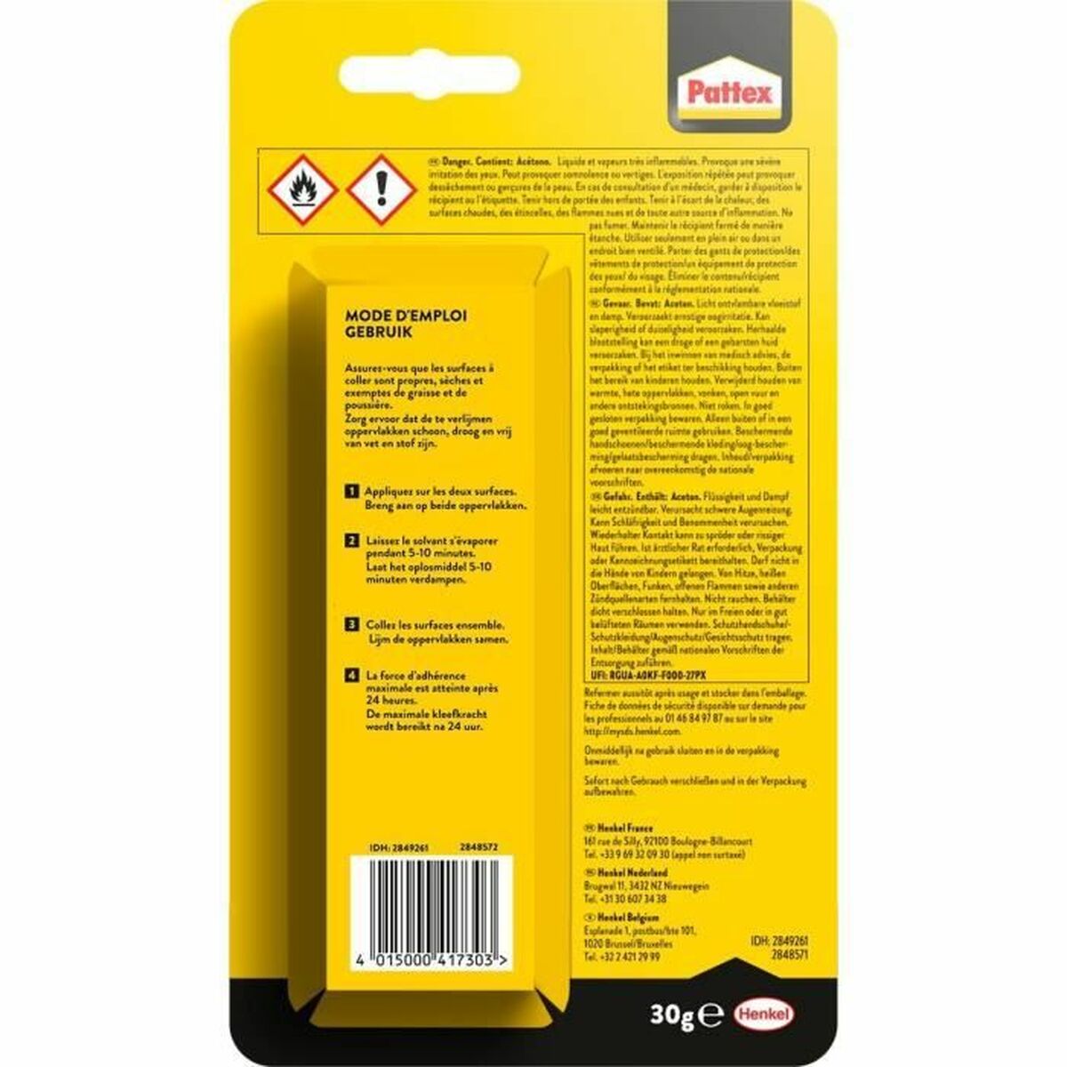 Pattex 1472457. Tipo de dispensador: Tubo, Color del producto: Negro, Amarillo. Peso del paquete: 30 g, Tipo de embalaje: Blister. Cantidad por paquete: 1 pieza(s)