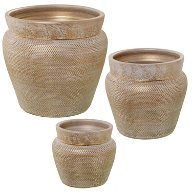 Set de Maceteros Alexandra House Living Blanco Dorado Cerámica (3 Piezas)