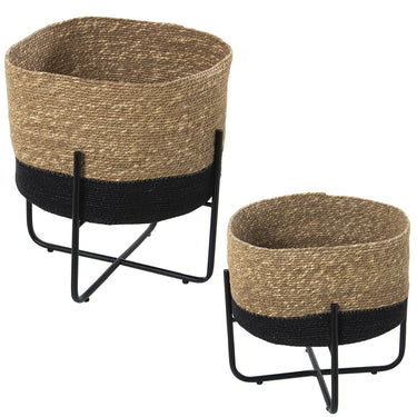 Set de Maceteros Alexandra House Living Metal Mimbre Con soporte (2 Piezas)