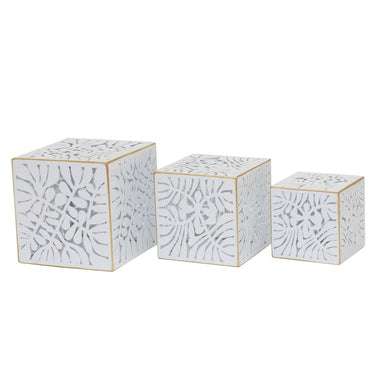 Set de Maceteros DKD Home Decor Hojas Dorado Metal 15 x 15 x 15 cm Blanco Tropical Hoja de planta