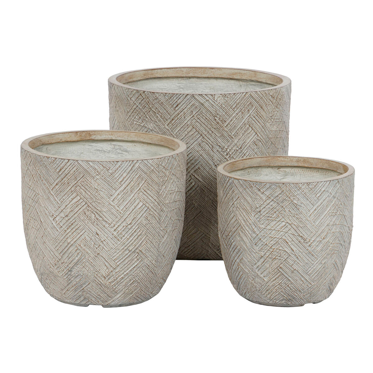 Set de Maceteros Home ESPRIT Beige Fibra de Vidrio Magnesio 44,5 x 44,5 x 43 cm (3 Unidades)