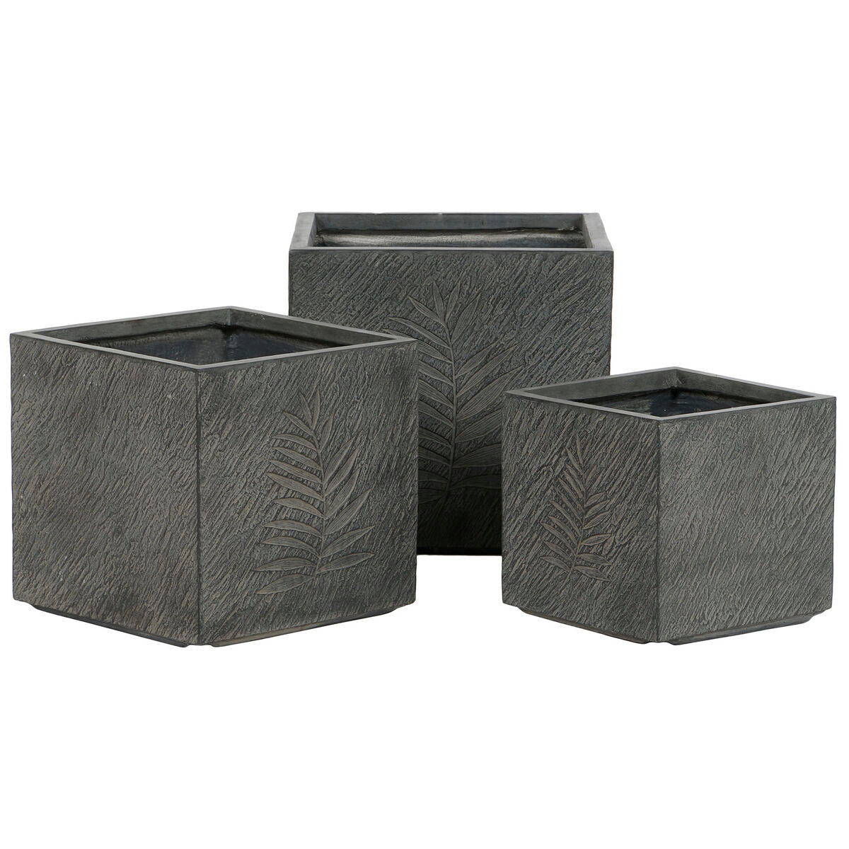 Set de Maceteros Home ESPRIT Gris oscuro Fibra de Vidrio Magnesio 44,5 x 44,5 x 43 cm (3 Unidades)
