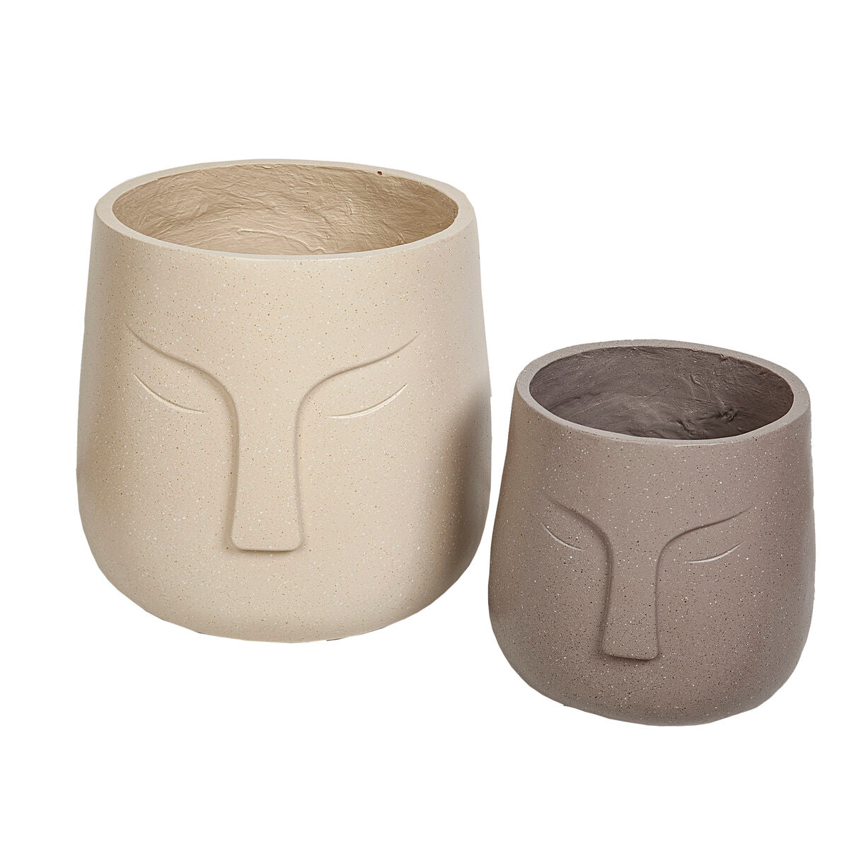 Set de Maceteros Romimex Beige Cerámica Rostro (2 Piezas)