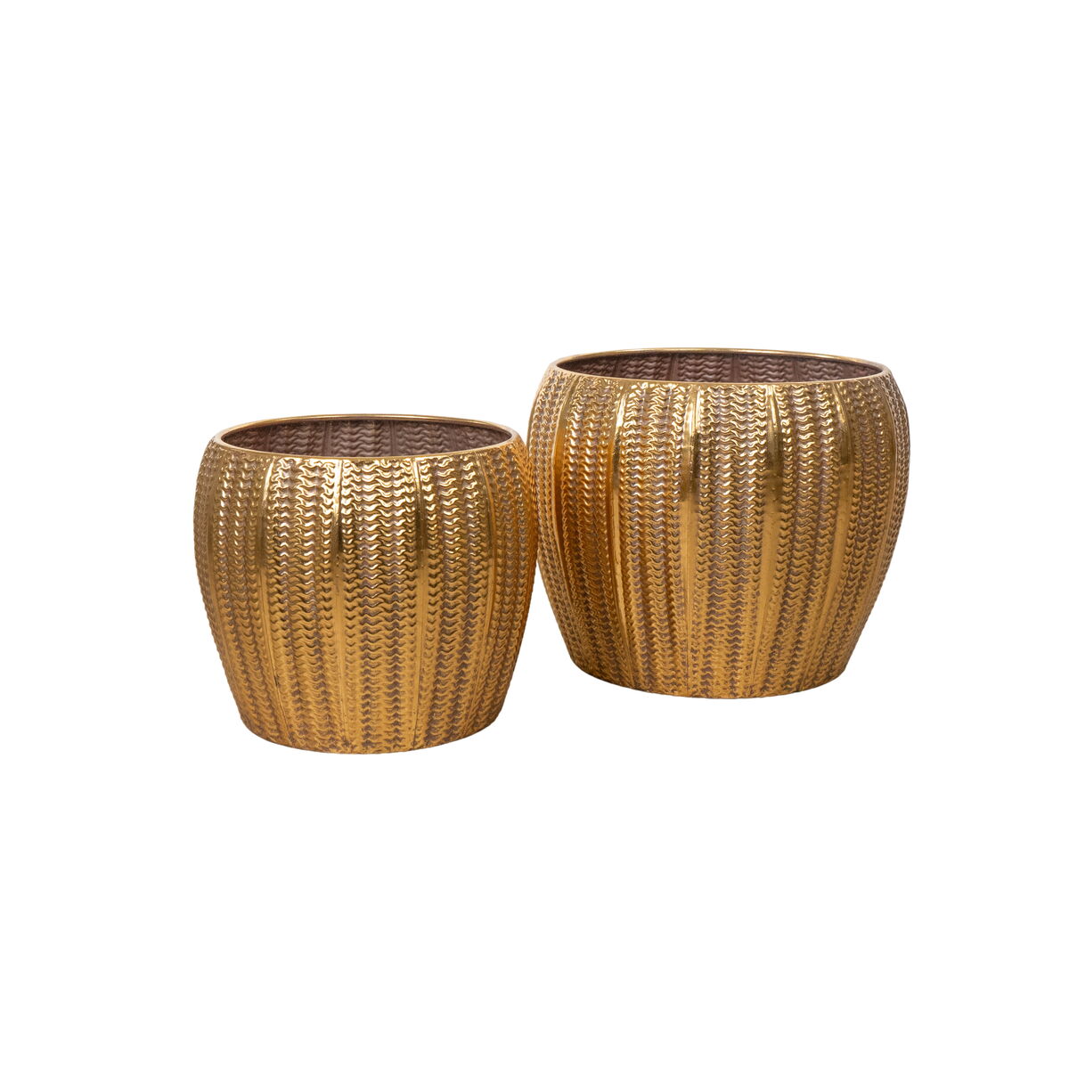 Set de Maceteros Romimex Dorado Metal (2 Piezas)