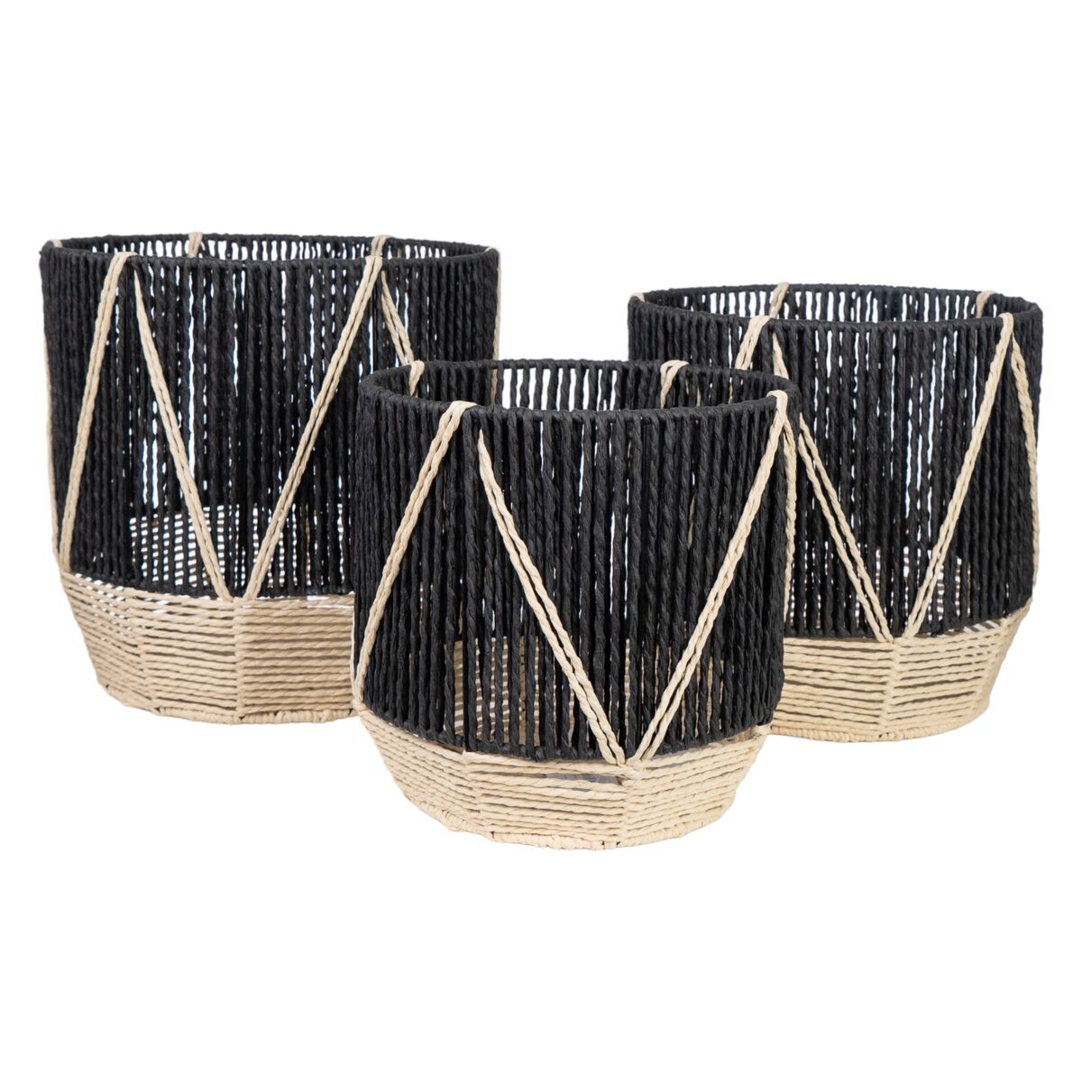 Set de Maceteros Romimex Negro Cuerda (3 Piezas)