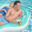 A espreguiçadeira flutuante é feita em vinil de alta qualidade, durável e estável. Possui duas câmaras de ar fáceis de encher em poucos minutos. Também está equipada com um suporte espaçoso para bebidas e lanches.