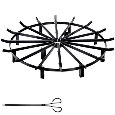 This heavy-duty fire pit grate is designed with a highly resilient steel structure with a blackened surface that will remain in use for years. The fire pit grate consists of 3/4-inch thick square steel radii and a 3/8 x 1-inch thick support ring for extremely long life. With a total diameter of 36 inches, it provides a hotter, better, and safer fire where less fuel needs to be added to keep it burning.