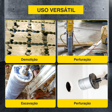【AMPLA APLICAÇÃO】 - Nossa broca de núcleo de concreto pode ser amplamente utilizada para perfuração de concreto armado, tijolo vermelho, mármore e outros materiais sob condições específicas, como instalação de ar condicionado, tubulação, corrimão de escada, rodovia e aeroporto, etc.