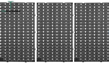 Três placas de parede de plástico estáveis interligadas por um sistema de encaixe em uma única placa