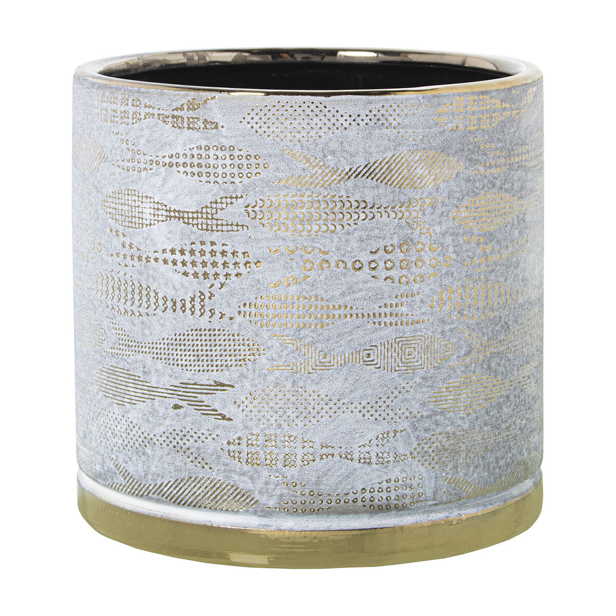Macetero Alexandra House Living Blanco Dorado Cerámica Peces 18 x 18 x 16 cm