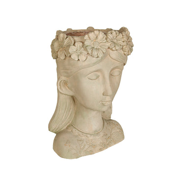 Macetero Romimex Gris Resina Flores Busto 28 x 43 x 24 cm