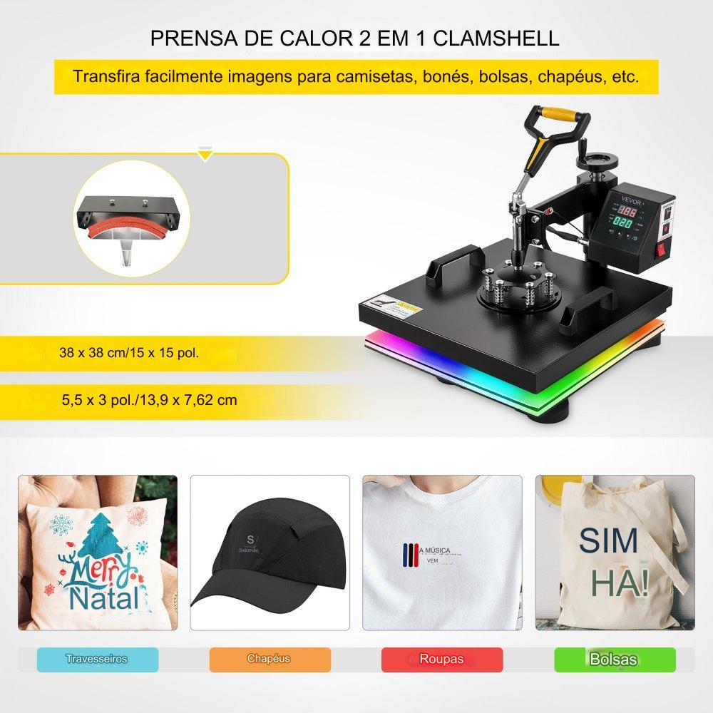 Fácil de usar: A máquina de sublimação VEVOR 2 em 1 é especialmente adequada para a produção de presentes personalizados para familiares e amigos. Pode ser utilizada em camisetas, travesseiros, bolsas, capas de celular, bonés, entre outros. Transmite rapidamente imagens e caracteres coloridos para tecidos como algodão, tecido, HTV, cerâmica, óculos, tecidos, linho, fibras, nylon, etc.