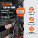Excelente capacidade de carga: Esta talha de corrente é feita de aço carbono sólido com alta resistência ao impacto e resistência à oxidação, projetada especificamente para uso a longo prazo. Com estrutura simples e tamanho pequeno, é fácil de transportar. Capacidade de carga: 2 T. Sistema de frenagem confiável: O freio de lingueta dupla distribui a carga para os lados opostos das engrenagens para aumentar a segurança da carga. O gancho de liga de aço de nível industrial gira 360° para facilitar o levantamento. Corrente Premium G80: A corrente de elevação é feita de aço manganês galvanizado G80 e possui alta resistência e tenacidade. Ao trabalhar em ambientes agressivos, a camada galvanizada protege contra a corrosão. Dispositivo de corrente guia do tipo guiado: Torna toda a máquina absolutamente suave quando a corrente pesada é puxada livremente e diz adeus ao bloqueio. mostre mais