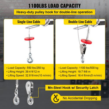 Capacidade de carga de 500 kg: O dispositivo de elevação elétrico levanta facilmente pequenos motores, engrenagens ou materiais de construção. Suporta dois modos de elevação com um gancho de segurança de aço. A capacidade e velocidade de uma única linha são 250kg, 10m/min. A capacidade e velocidade da linha dupla são de 500kg, 5m/min. Motor potente: O motor de cobre de alta qualidade fornece potência forte de 900 W, que pode suportar grande potência sem deformação para este guincho elétrico. Além disso, o grande ventilador resfria a máquina rapidamente usando a proteção contra superaquecimento. Este potente motor garante um trabalho altamente eficiente e economiza mais energia. Cabo de controle de 1,3 m: Nossa talha elétrica de controle remoto é obtida por uma chave de manivela instalada na máquina para operação a uma distância segura. Além disso, nossa talha está equipada com um interruptor de limite e uma mola amortecedora para parar automaticamente a máquina e evitar que ela caia. mostre mais