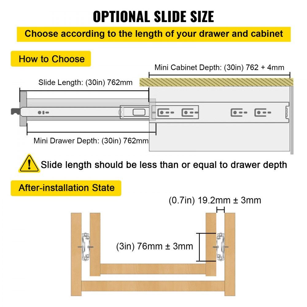 Trilhos de Gaveta de Extensão Total de 76 cm
