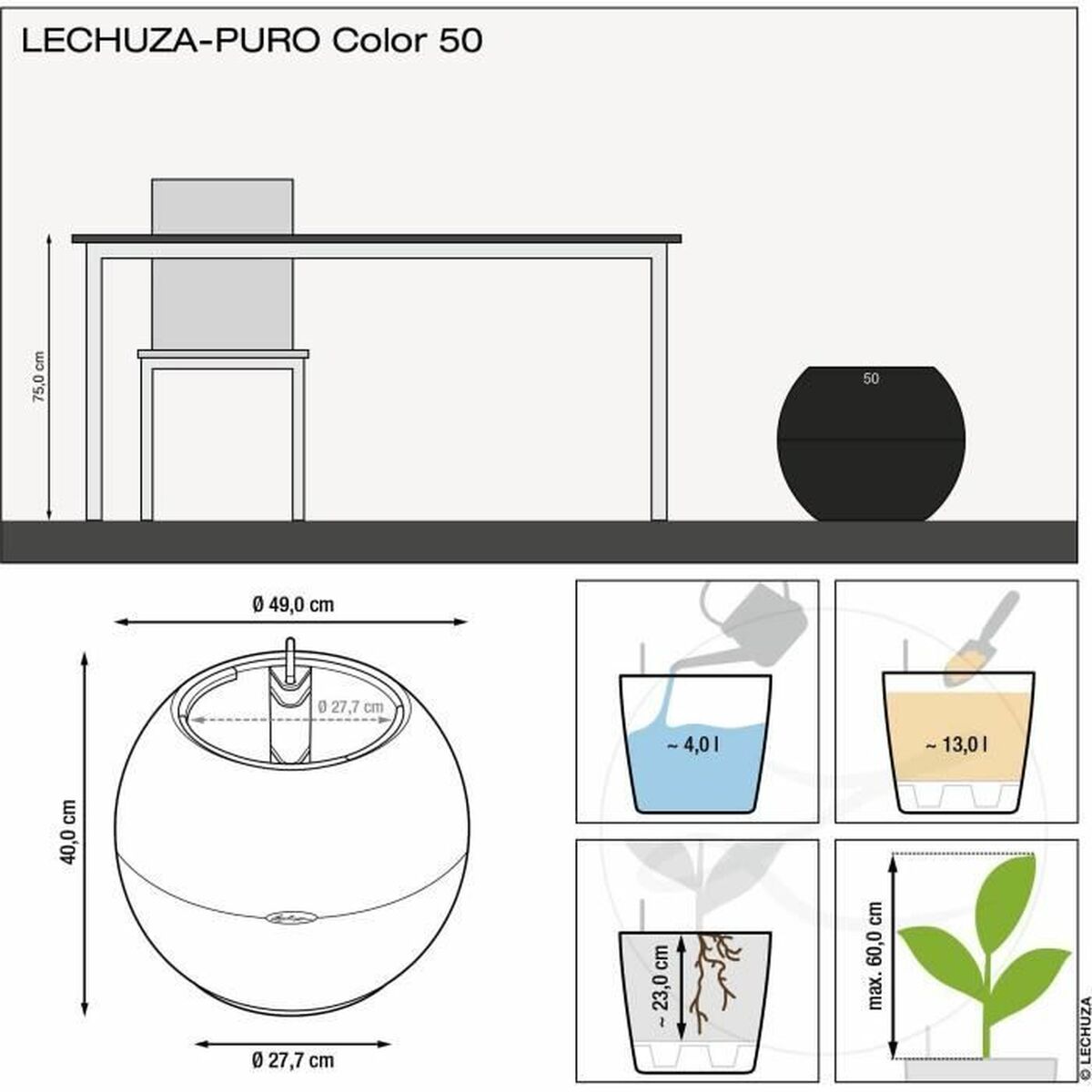 Si te gusta cuidar cada detalle de tu hogar y estar a la última en productos que te harán la vida más facil, compra Maceta Autorriego Lechuza Gris Esfera al mejor precio.