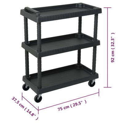 Carrinho ferramentas oficina c/ 3 níveis 75x37,5x92 cm PP preto
