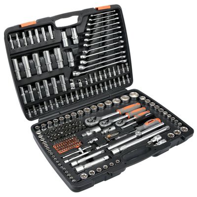 Este conjunto de ferramentas de 216 peças, incluindo encaixes de soquete e pontas, é um conjunto durável, completo que é adequado para para o uso diário na garagem ou oficina. É um kit perfeito para todos os entusiastas de bricolage, mecânicos e amadores.