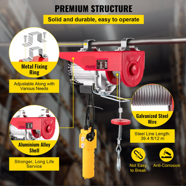 - 【GRANDE CAPACIDADE DE LEVANTAMENTO】- Faça o trabalho com mais rapidez e segurança com um guindaste elétrico em velocidades de até 33 pés/min (simples) e 16 pés/min (duplo). Tem dois métodos de uso. Capacidade de linha única / dupla: 550 lbs / 1100 lbs.