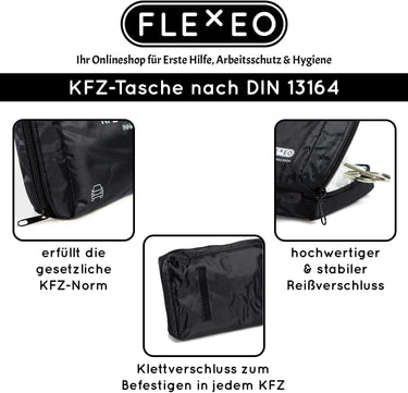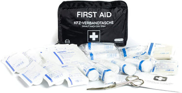 - Conteúdo de acordo com a norma DIN 13164: A nossa mala de primeiros socorros para automóvel está em conformidade com a norma DIN 13164 atual e, portanto, cumpre todas as diretrizes e obrigações para automóveis de todos os tipos. Este kit de primeiros socorros não deve faltar em nenhum carro.