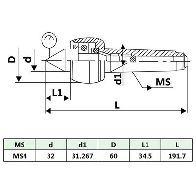 O ponto rotativo MT4 é feito de aço resistente ao calor com elevada dureza, alta precisão e resistência à corrosão. Os rolamentos de esferas internos proporcionam um deslocamento suave e concêntrico da sua peça de trabalho. O cone MT4 também é compatível com todos os modelos de tornos MT4.