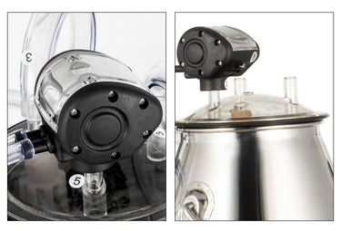 • 【 MATERIAL DURÁVEL 】- Esta máquina de ordenha elétrica de 25L com construção em aço inoxidável garante manutenção mínima e higiene máxima. A máquina de ordenha está equipada com um balde de qualidade alimentar e uma mangueira de ar de borracha.