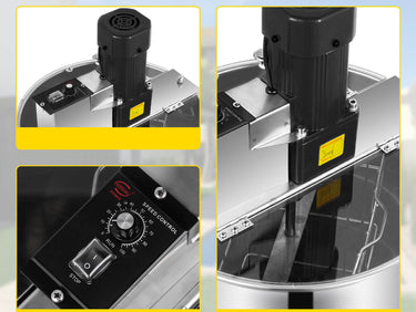 - Aço inoxidável de alta qualidade: O corpo do extrator de mel motorizado é feito de aço inoxidável de alta qualidade, resistente ao desgaste e seguro para uso a longo prazo. A superfície lisa e a construção soldada sem costura facilitam a limpeza após o uso.