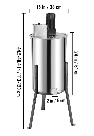 - Capacidade de 3 quadros : Nosso extrator de mel elétrico pode processar até 3 quadros por vez. Adequado para quadros de 9,2 x 17,3 x 19,2 polegadas / 23,5 x 44 x 48,8 cm. A engrenagem fechada no quadro não contamina o mel.
