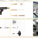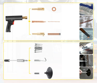 - Acessórios úteis : Esta ferramenta de detecção de amassados possui acessórios completos armazenados em uma caixa de ferramentas para resolver todos os problemas comuns de amassados em veículos com vários modos de soldagem. Além disso, a forma compacta e a alça conveniente o tornam portátil.