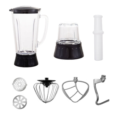 - 【 PROCESSADOR DE ALIMENTOS 4 EM 1 】 - Diversifique suas habilidades de cozinhar e assar adicionando acessórios como moedor de carne, liquidificador, espremedor e moedor de pó. Com o nosso processador de alimentos multifuncional 4 em 1, você pode não apenas fazer bolo, pão, biscoito, pastelaria, muffin, mas também moer carne, espremer suco e moer café com facilidade.
