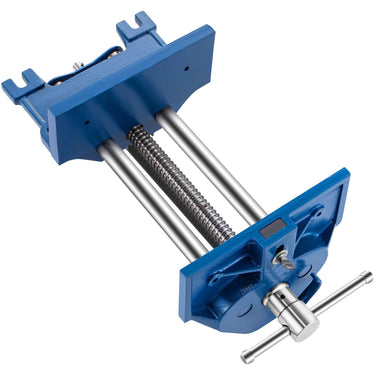 - · Operação conveniente: O mecanismo de liberação rápida permite que você use este torno de madeira de forma rápida e eficiente. Puxe a alça para cima e segure-a; isso desbloqueará a porca do torno. Coloque as garras na abertura apropriada e solte a alça. Basta girar a alça principal para encaixar o parafuso e apertar a morsa no produto.