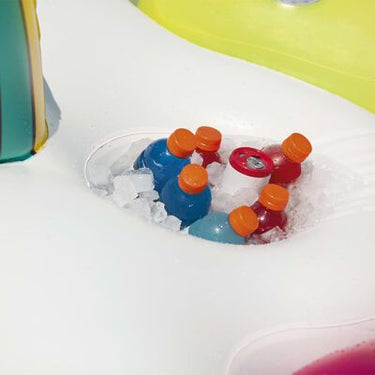 A bóia de piscina foi fabricada com um vinil resistente e pré-testado para garantir que não rebenta facilmente mesmo quando estiver sujeita à sua capacidade máxima, o que a torna perfeita para uma festa íntima entre os seus amigos ou familiares. O amplo piso em malha desta bóia oferece espaço suficiente para acomodar até 6 adultos com uma capacidade de carga máxima de 540 kg. Os dois almofadões de assento e de encosto grandes permitem que todos relaxem em total conforto. O refrigerador embutido e os suportes para 8 copos oferecem muito espaço para bebidas, para que possa assim ficar hidratado na água. Está incluída uma plataforma de embarque destacável para facilitar o carregamento e o descarregamento. Para sua total segurança, foi ainda construída com quatro pegas. A corda e o kit de reparação estão também incluídos na entrega.