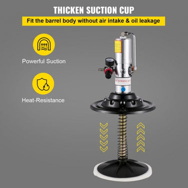 Bomba Pneumática de Graxa: Capacidade: 20 litros (5 galões); Pressão de saída: 30-40MPA Proporção de impressão: 50:1. Quantidade de óleo: 0,75 l/min. A bomba pneumática de graxa possui alta pressão de trabalho, capaz de injetar óleo rapidamente em seu veículo, perfeita para lubrificação e manutenção de diversos veículos. Capacidade de 5 galões: Fabricada em aço cromo vanádio e ferro fundido, a bomba de graxa é caracterizada por alta dureza e robustez. A grande capacidade de 5 galões permite que você coloque o tambor de óleo diretamente na máquina sem ter que reabastecer o óleo várias vezes. A grande quantidade de óleo que pode reter efetivamente reduz o tempo pela metade, economizando energia. Pistola de graxa universal 360°: A cabeça da pistola na bomba de graxa pode ser girada em várias direções, atendendo a diferentes requisitos de posição sem restrições. A ventosa espessada cabe no corpo do cano sem entrada de ar e evita vazamento de óleo. Além disso, proporciona forte desempenho de vedação, facilitando a drenagem do óleo. mostre mais
