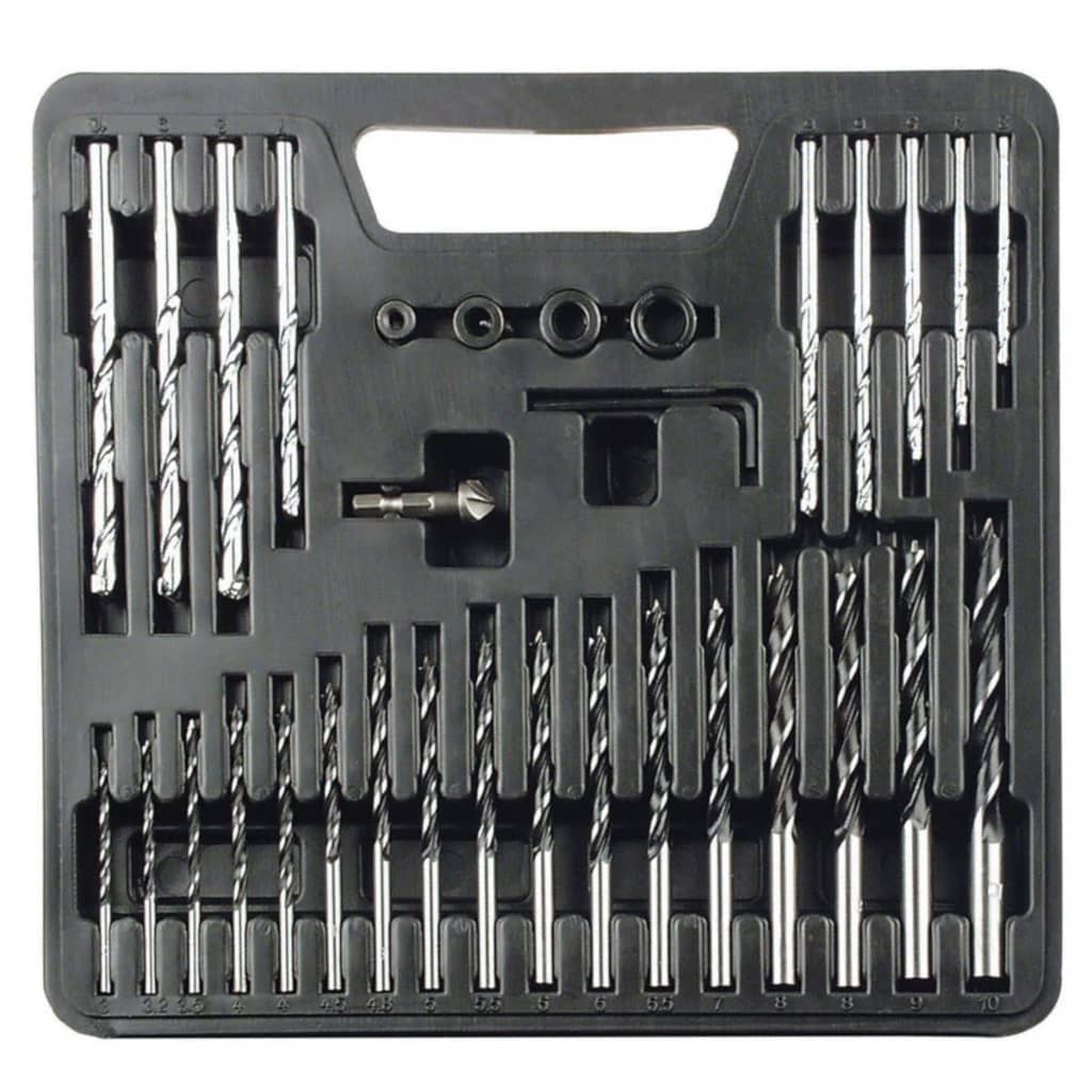 - 17 x Brocas para madeira: 3; 3,2; 3,5; 2 x 4; 4,5; 4,8; 5; 5,5; 2 x 6; 6,5; 7; 2 x 8; 9; 10 mm
