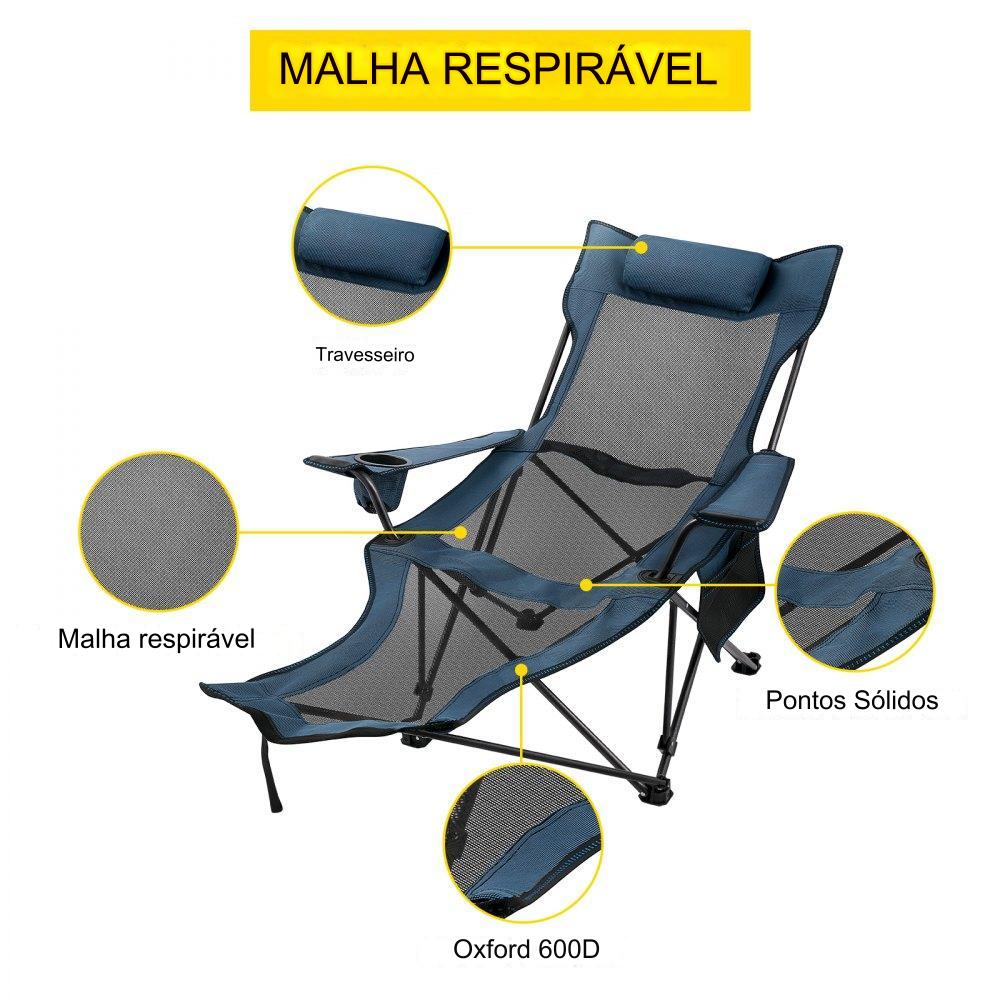 【Especificações Técnicas】 - Produto: Cadeira dobrável; Cor: Azul; Tecido: Tecido Oxford 600D e malha; Tamanho dobrado: 18 x 18 x 89 cm (7,09 x 7,09 x 35,04 polegadas); Tamanho desdobrado: 168 x 56 x 69 cm (66,14 x 22,05 x 27,17 polegadas); Capacidade nominal: 110 kg (242,5 libras); Capacidade máxima: 150 kg (330 libras).
