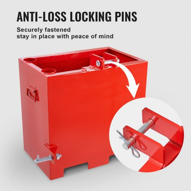 Aço robusto e sólido: A caixa de lastro do trator VEVOR é feita de aço robusto e espesso. A estrutura de reforço triangular aprimorada e a excelente soldagem garantem durabilidade e estabilidade, prolongando bastante a vida útil. O revestimento em pó na superfície pode prevenir ferrugem e corrosão. CAPACIDADE DE PESO DE 800 LBS: A caixa de lastro pode ser preenchida com até 800 libras de areia, aço, concreto, cascalho ou pedra para melhorar a estabilidade do trator. Ele oferece um amplo espaço de armazenamento de 5 pés cúbicos com um suporte de tubo de 3 polegadas de largura para armazenar ferramentas. Design de porta deslizante: Com uma porta deslizante exclusiva na parte inferior, você pode reduzir ou esvaziar rapidamente o enchimento da caixa de lastro simplesmente puxando-a para cima. Pinos anti-queda: Os pinos anti-perda incluídos evitam eficazmente o afrouxamento acidental durante o uso, garantindo um alto nível de segurança durante o seu trabalho. Fácil de instalar, sem necessidade de ferramentas. mostre mais