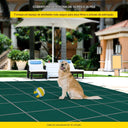 Especificações técnicas: Modelo: YYCM-7784; Material: Polipropileno; Tamanho da piscina: 3,66 x 7,31 m (12 x 24 pés); Tamanho da capa da piscina: 4,27 x 7,93 m (14 x 26 pés); Superfície: Malha apertada; Cor: Verde; Mola de tração: Aço inoxidável 304; Parafuso de aterramento: Latão; Peso bruto: 16,5 kg (36,4 lbs).