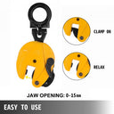 Capacidade de elevação de 1T - Capacidade de até 2.200 libras/1 tonelada. Abertura da mandíbula: 0-15 mm / 0-0,6 polegadas. A pinça possui uma excelente mandíbula que permite levantar placas de diferentes espessuras com a mesma pinça. CONSTRUÇÃO PESADA - A braçadeira de elevação da placa de aço é feita de material de aço de alta qualidade com superfície revestida a pó, garantindo durabilidade e longevidade. PROTEÇÃO DE SEGURANÇA - Instalamos um mecanismo de segurança confiável e uma alavanca de travamento que garantem que a braçadeira de elevação da placa não escorregue ao levantar ou abaixar uma carga. CARACTERÍSTICAS CONVENIENTES - A braçadeira de elevação está equipada com conectores giratórios especiais para permitir fácil operação da braçadeira de placa na posição vertical. AMPLA GAMA DE APLICAÇÕES - Usado para levantar e transportar placas e estruturas de aço em posição vertical em diversas ocasiões, como estaleiro, instalação de estrutura de aço, mercado de aço, processamento de máquinas, canteiro de obras, etc.